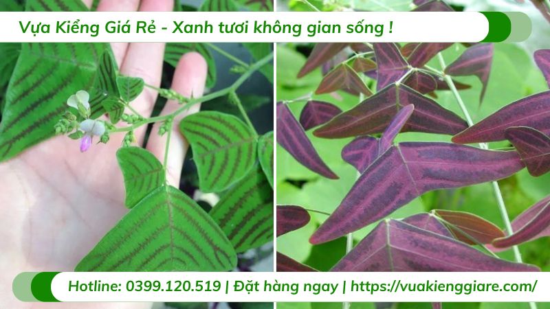 Lá cây: Lá cây có hai hình dạng chính là hình tam giác và boomerang, với các vân sọc nổi bật trên bề mặt.
