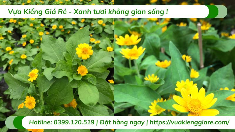 Hoa: Hoa cúc mặt trời mọc ở nách lá, có màu vàng sáng rực rỡ và nổi bật. Mặc dù hình dáng hoa có nét giống với hoa hướng dương, nhưng kích thước nhỏ hơn nhiều. Hoa nở quanh năm, đặc biệt vào những tháng nắng nhiều, góp phần làm sáng bừng không gian.