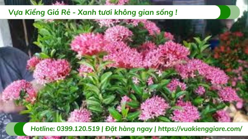 Hoa: Hoa có màu hồng tươi, nở thành từng chùm lớn ở đầu cành, với nhiều bông hoa nhỏ. Hoa nở quanh năm, nhưng đẹp nhất vào mùa xuân và hè. Màu hoa dịu nhẹ, tạo cảm giác thanh thoát, nhẹ nhàng cho không gian.